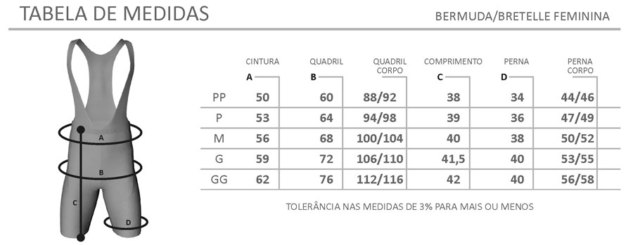 • Cintura com elastano - maior fixação junto ao corpo em diferentes posições das mais variadas modalidades de ciclismo