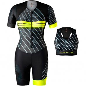 • Forração Feminina exclusiva Ultracore - anatômica, conta com tratamentos térmico, de umidade e anti microbiano, protegendo a pele e absorvendo impactos transmitidos pelo selim com qualidade em pedais de curta e média duração