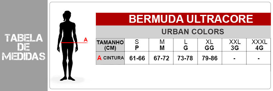 Confira as medidas da Bermuda Feminina Ultracore Urban Colors: