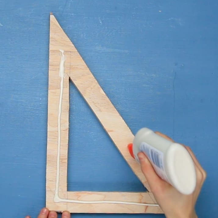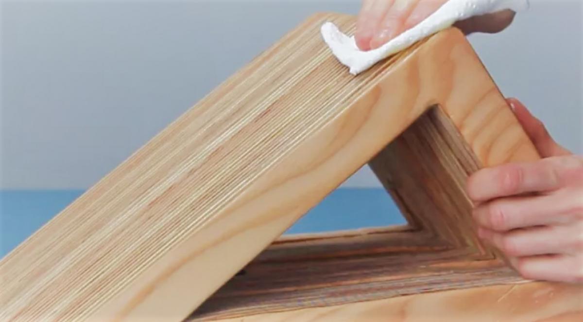 Você vai aplicar o enchimento de madeira em toda a superfície do seu grande triângulo, de forma a deixá-la livre de ondulações, vãos ou buracos. Utilize luvas para aplicar o produto.