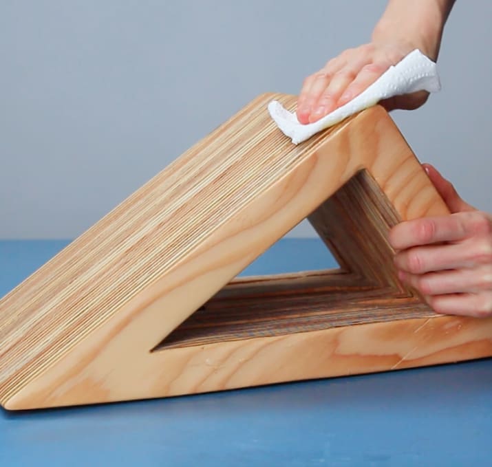 Esse passo é opcional: você pode aplicar o óleo dinamarquês para deixar a madeira mais brilhante. Além disso deixa seu suporte resistente à água e aumenta a vida útil do mesmo. Se você optar por utilizar esse produto, deixe o suporte secando durante um dia para completar os próximos passos.