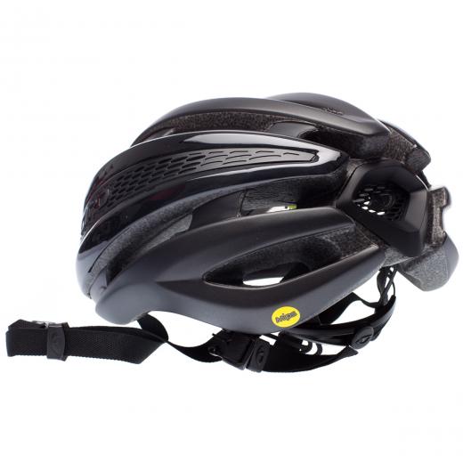 O fechamento é feito através de um ajuste Roc Loc Air® em duas dimensões, que garante ajuste preciso e confortável com encaixe occipital. Outras duas cintas jugulares auxiliam para um fechamento mais preciso e melhor ajuste com a cabeça através de um engate rápido.