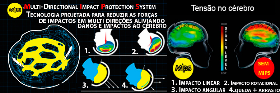 A MIPS é uma placa na parte interna do capacete, muito leve mas de grande serventia na hora da queda. Acontece da seguinte forma: quando o ciclista cai usando qualquer capacete convencional, o impacto é concentrado em um ponto da cabeça. Com a tecnologia MIPS, essa placa interna se move rotacionalmente na hora do impacto, ajudando a aliviar a pressão em um ponto dissipando para mais áreas da cabeça. Dessa forma, a força de impacto e chance de possíveis danos no cérebro reduzem drasticamente.