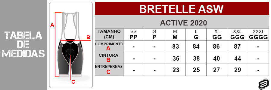 Confira as medidas do Bretelle ASW Active:
