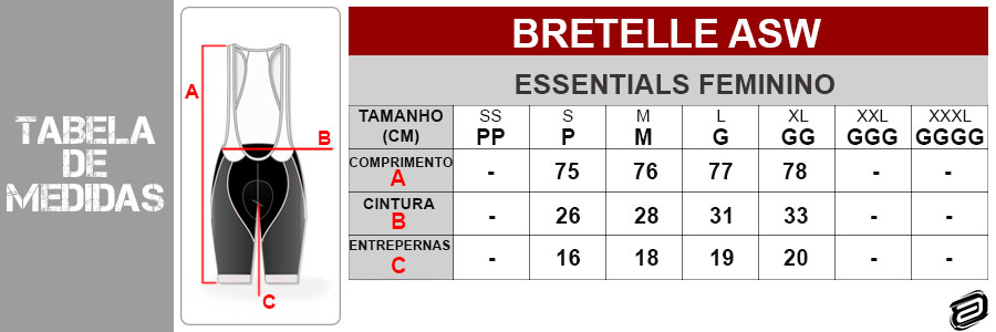 Confira as medidas do Bretelle Feminino ASW Essentials: