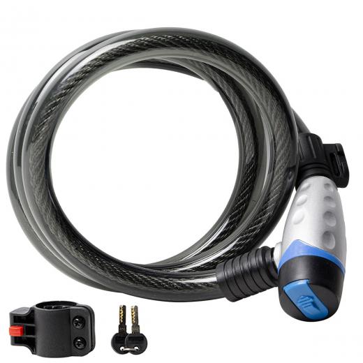 Com comprimento de 1,2 metros (esticado) e 15mm de espessura, é ideal para ser utilizado sozinho ou em conjunto com demais cadeados, passando por rodas e quadros. Contando com fechamento e trava por meio de chave, é mais resistente à tentativas de estouro do miolo, com maior praticidade sem carregar chaves e sem perder ou esquecer nada.