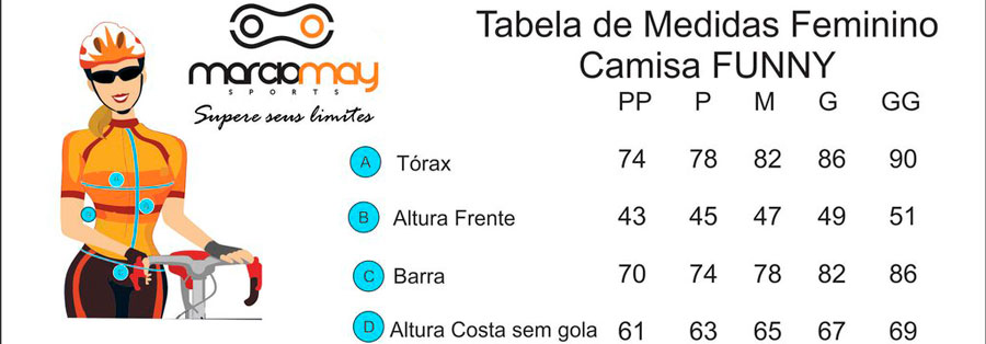 Quer saber a medida ideal para a Camisa Feminina Marcio May Funny Bike Neon?