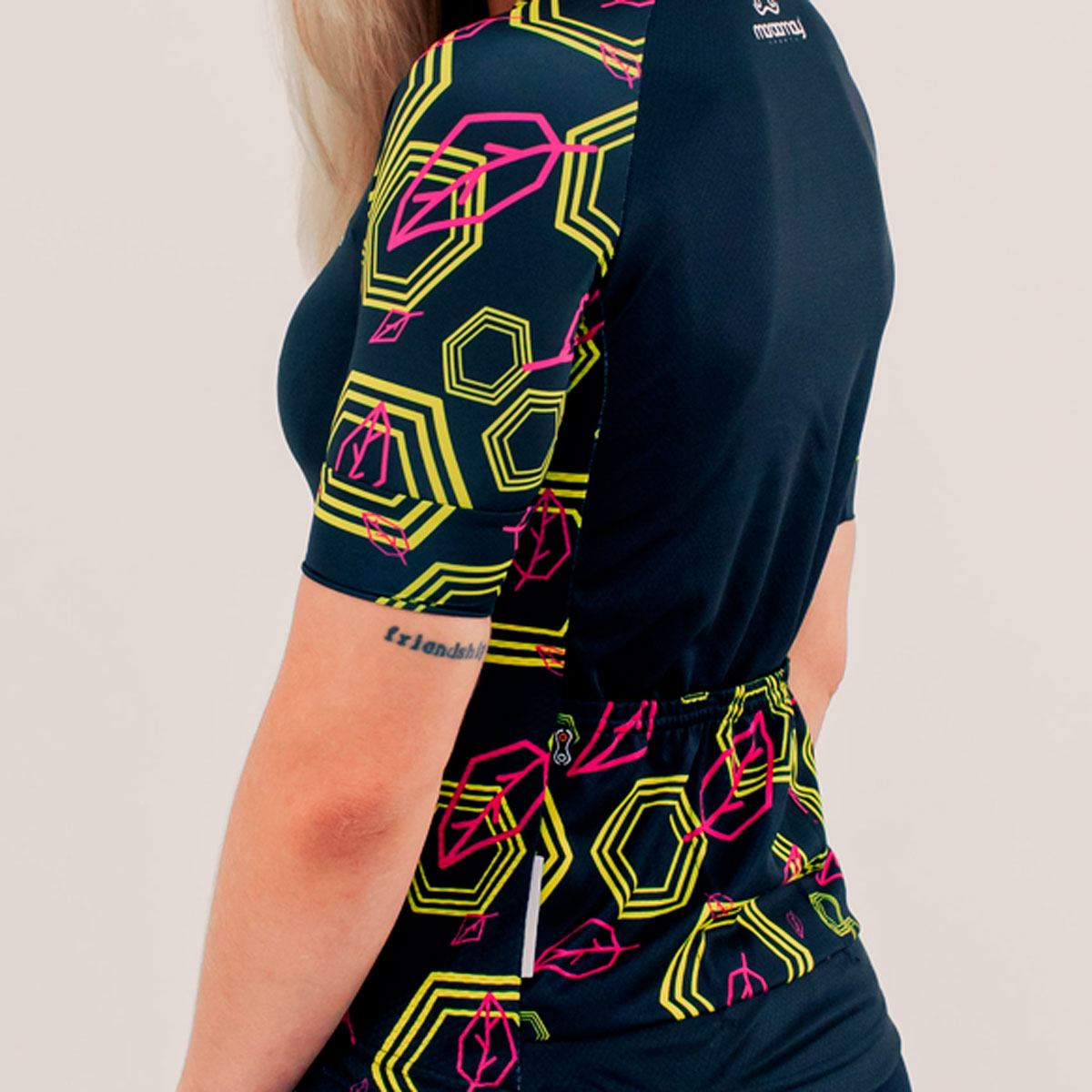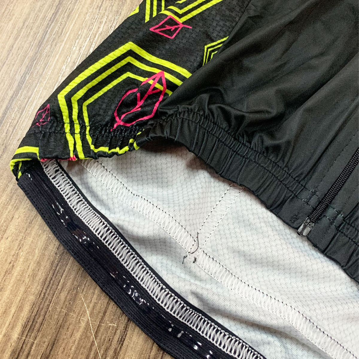 Contado com 3 bolsos traseiros, a Camisa Feminina Marcio May Sport Black Geometric permite carregar mini ferramentas, géis de reposição, chaves, documentos e até celulares de telas com tamanho de 5,5 polegadas, para garantir ainda mais praticidade para andar de bicicleta em diferentes modalidades.