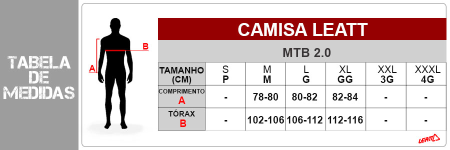 Saiba qual a medida ideal para a Camisa Leatt MTB 2.0: