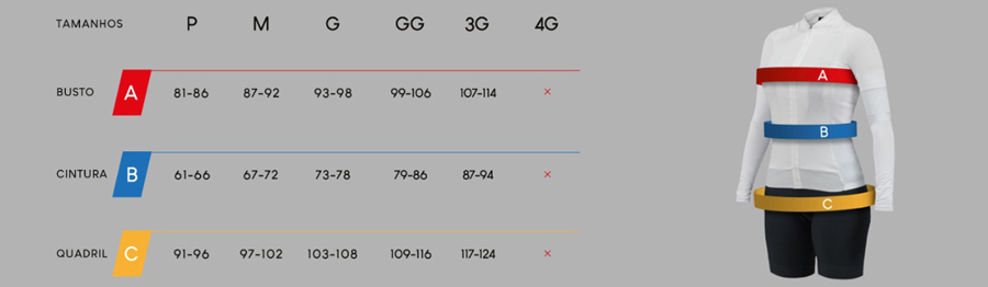 • Mangas com barra dupla - otimiza o ajuste e proporciona mais conforto sem incômodos ao se movimentar