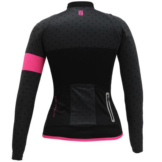 Camisa Ultracore Manga Longa Spicy Pink também possui zíper frontal de abertura 100% e os três bolsos traseiros tradicionais ideais para levar objetos de maior necessidade, como géis e ferramentas