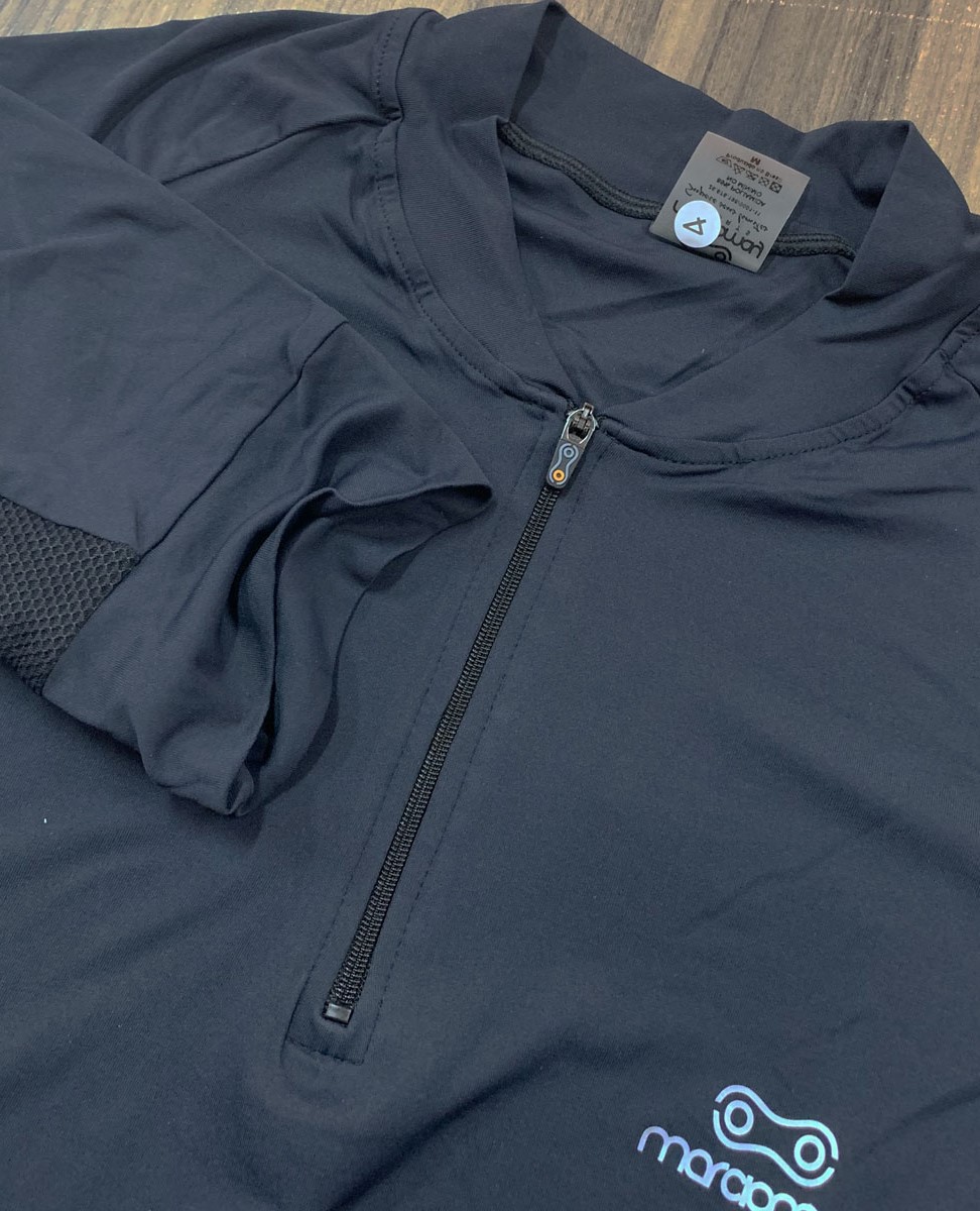 • Zíper de 15cm com trava - oferece conforto e caimento ainda mais solto do restante da camisa junto ao corpo em qualquer situação