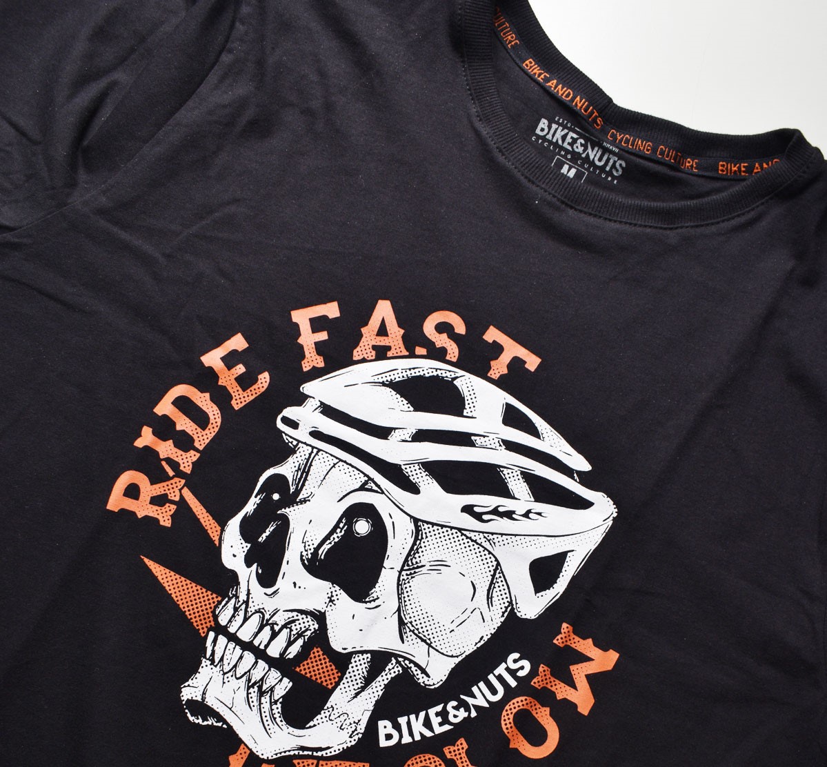 Fabricada com um acabamento diferenciado, a Camiseta Bike&Nuts Die Slow teve sua estampa desenvolvida para relembrar que pessoas que praticam o ciclismo tendem à aumentar seu tempo de vida, dado apontado por estudos realizados.