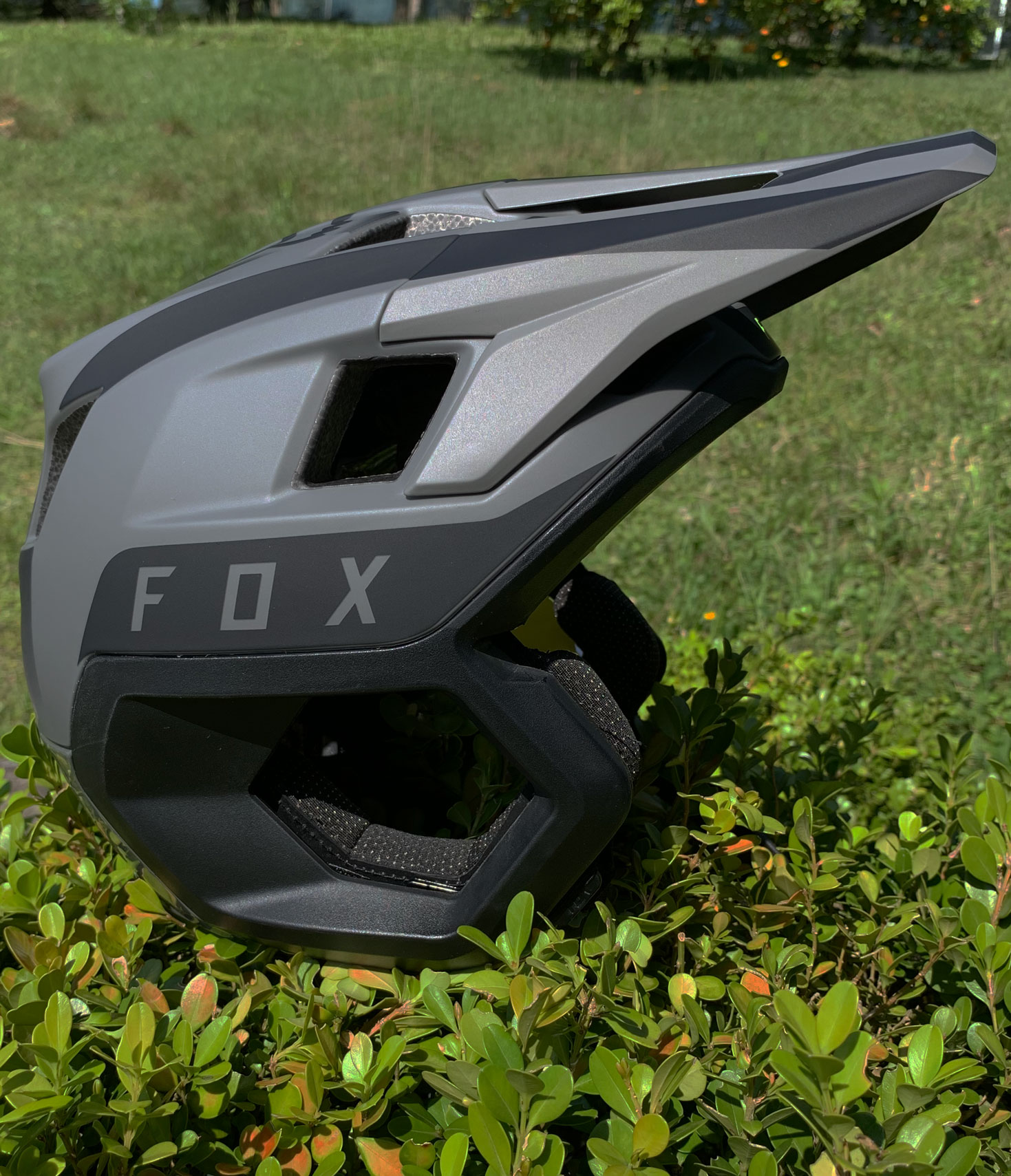 Isso tudo mostrando claramente a proteção similar à de um capacete bike full face, exceto pela parte frontal aberta, denominada open face pela Fox, garantindo da mesma forma, maior ventilação e conforto com a proteção elevada.