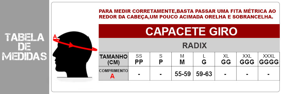 Confira e Compare as Medidas Ideais para o Capacete Giro Radix
