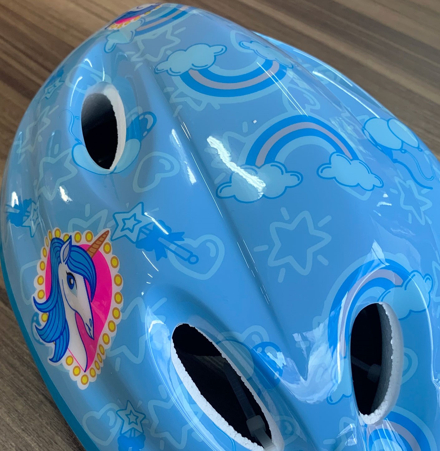 Capacete Infantil Absolute Shake Unicórnio é desenvolvido usando materiais de alta qualidade e resistência para garantir segurança e conforto à sua filha enquanto ela pedala.