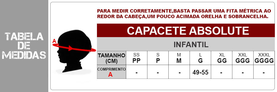Se liga nas medidas do Capacete Infantil Absolute Tuba: