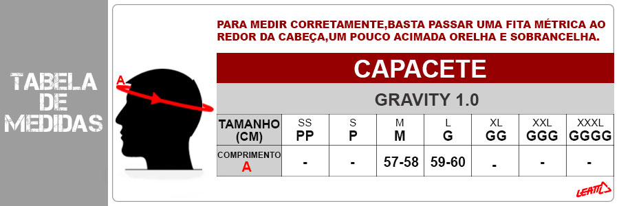Qual a medida ideal para o Capacete Leatt Gravity 1.0?