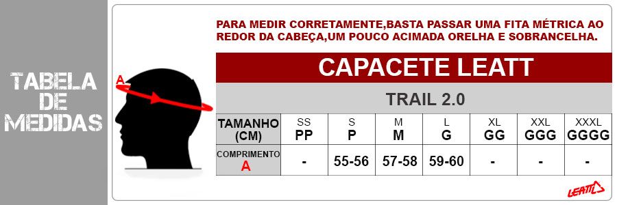 Quais as medidas ideais para o Capacete Leatt Trail 2.0?