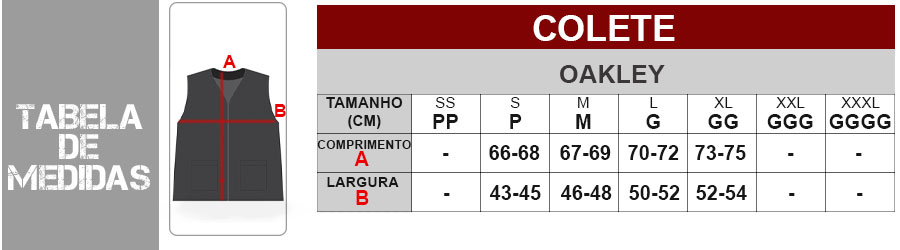 Se liga nas Medidas do Colete Oakley Elements Packable II: