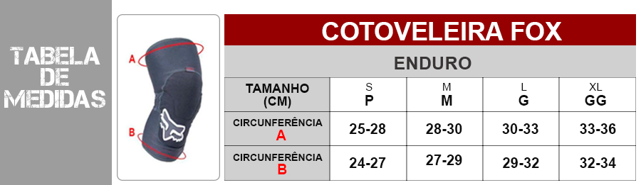 Qual a medida correta para a Cotoveleira Fox Enduro?
