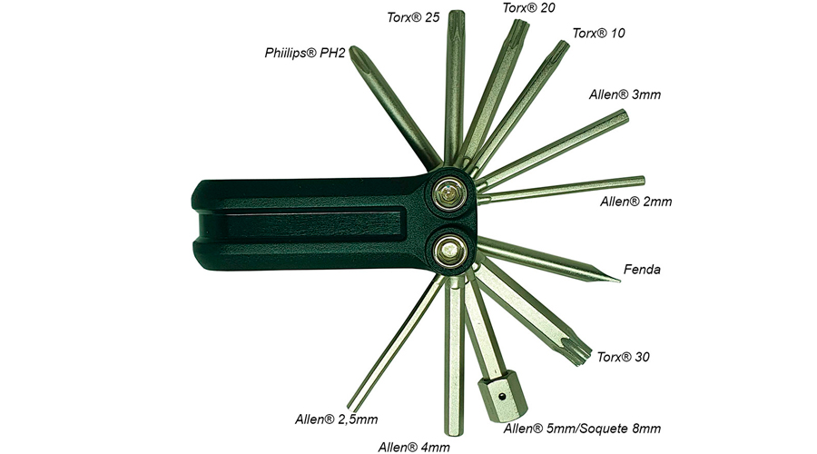 • 12 funções - variedade ideal em ferramentas para realizar ajustes, pequenos reparos e manutenções antes, durante e após seus treinos, passeios e provas