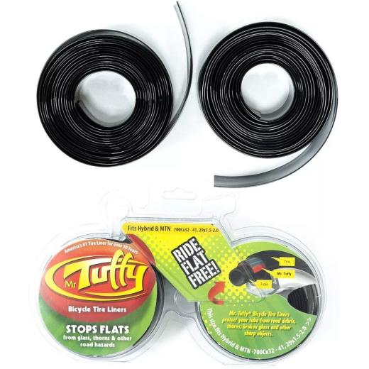 A primeira marca a lançar uma fita anti furo há mais de 30 anos, e uma das mais conceituadas marcas em produtos do ciclismo mundial. A fita Mr. Tuffy é fabricada em materiais plásticos de alta qualidade, mesclando uretano e poliuretano, gerando resistência e flexibilidade. A Fita Anti Furo Mr. Tuffy Aro 27,5/29 possui construção dupla, onde duas linhas protegem as câmaras de ar da sua bike contra os mais diversos tipos de furos. Em uretano ultraleve, a resistência na linha principal de rolagem do pneu contra furos dos mais diversos tipos é muito maior, e suas laterais ajudam na proteção contra furos e rasgos em impactos e curvas.