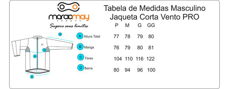 Confira as medidas da Jaqueta Corta Vento Marcio May Pro: