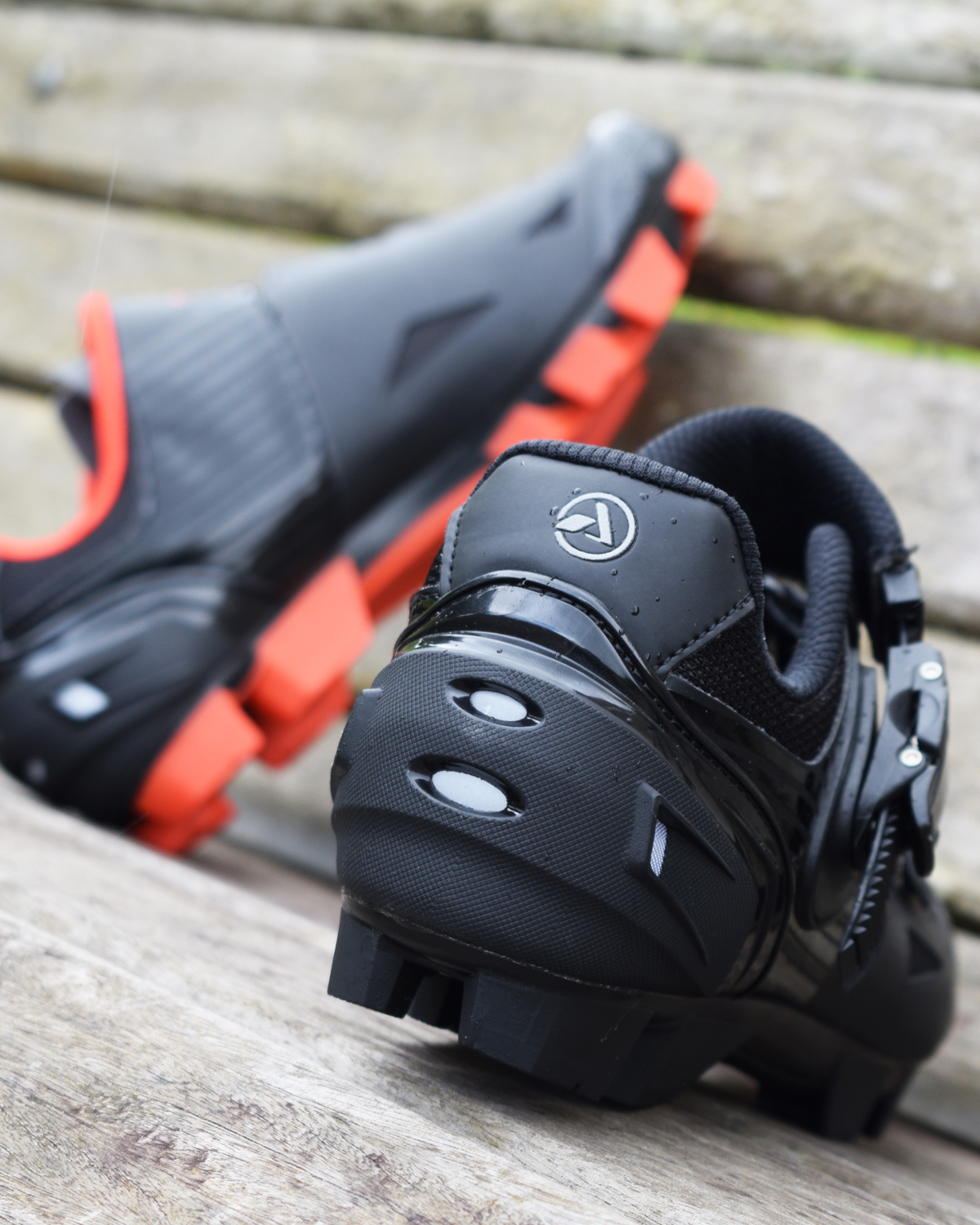 Em sua extremidade, a sapatilha para pedalar conta com dois espaços para colocação de travas extras, que facilitam na hora de caminhar por locais mais íngremes e/ou com muita lama.