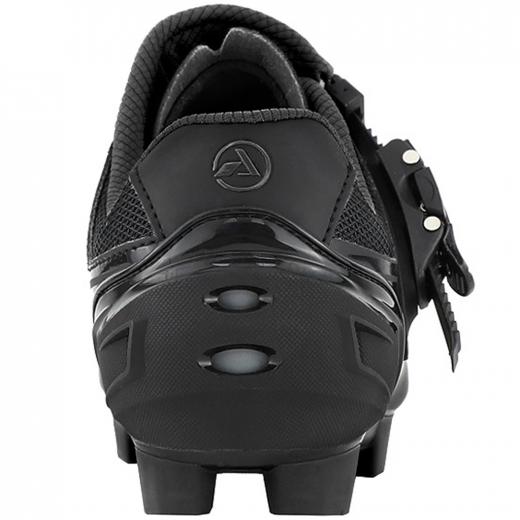 • Solado em dupla composição - produzido em nylon® e borracha termoplástica, possibilita  que a transferência de potência para os pedais seja mais eficiente, sem deixar de lado o conforto ao pedalar e caminhar
