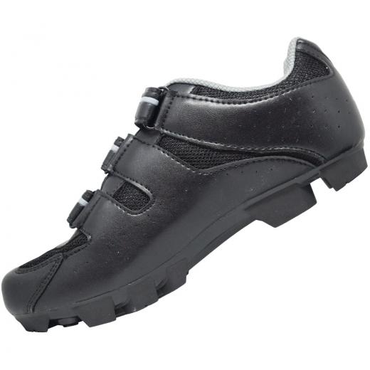 • Solado em borracha - com entre sola mais rígida para melhor aproveitamento da energia aos pedais e cravos mais altos para melhor caminhar com mais segurança