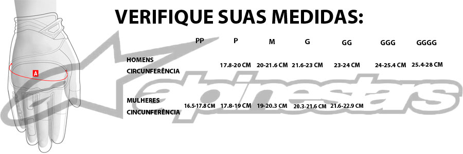 Qual a medida correta para a Luva Alpinestars A-Dura Gel: