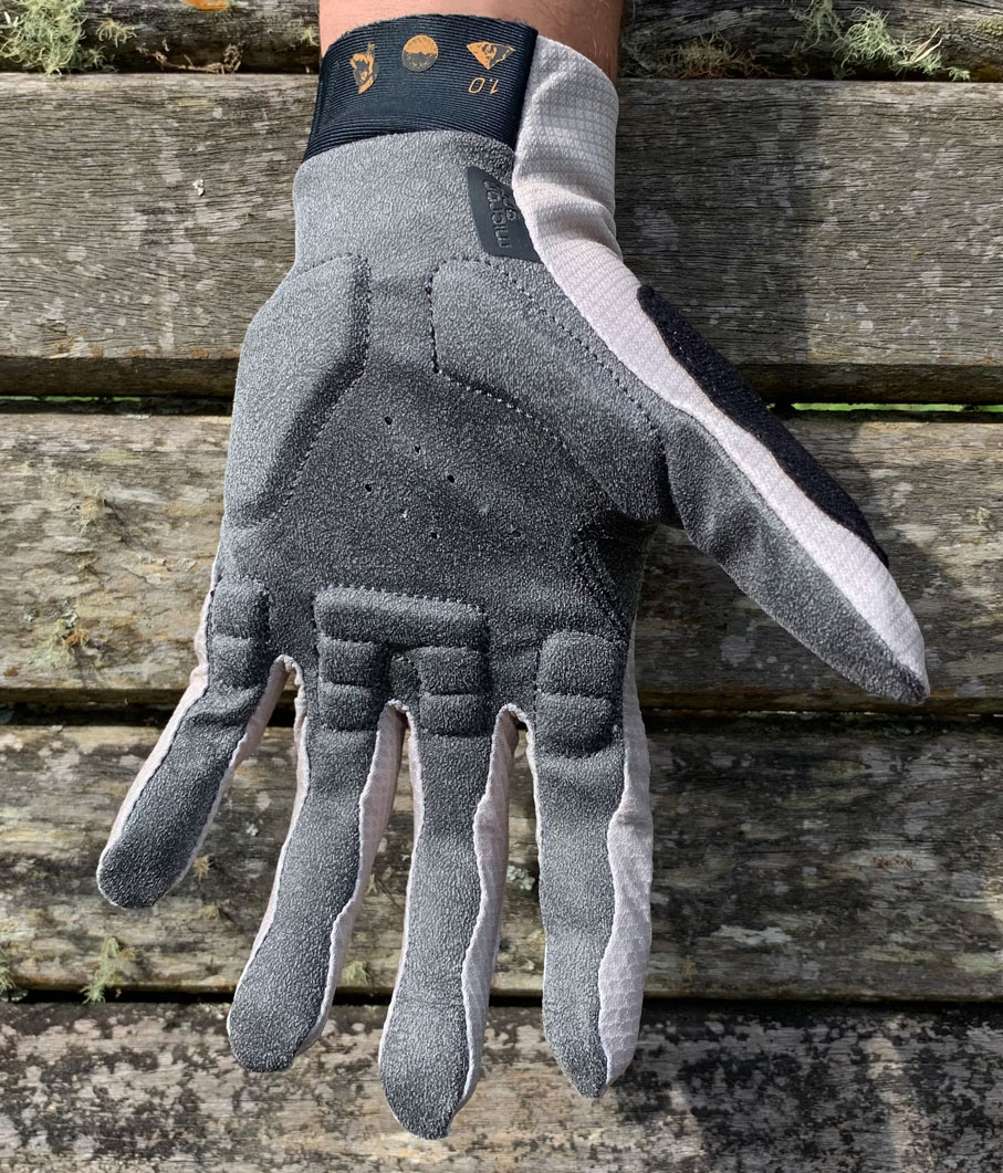 • Palma da mão em peça única de Microngrip® - leve e resistente, garante maior sensibilidade ao contato com as manoplas e com micro perfurações oferece mais respirabilidade