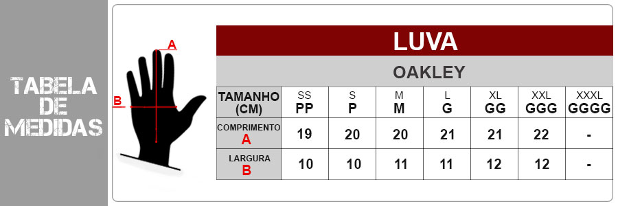 Confira as medidas da Luva Oakley Dr0ps Road: