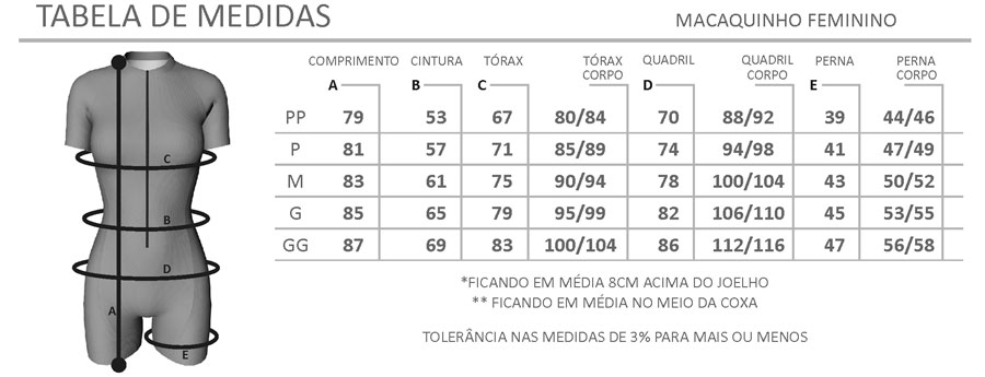 Saiba quais são as medidas do Macaquinho Feminino Furbo Dark Spring: