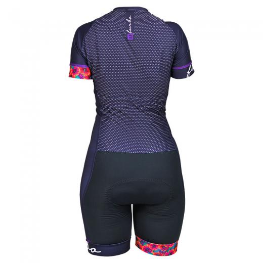 Com acabamentos das barras das mangas em corte a laser, o Macaquinho Feminino Furbo Hibisco oferece uma maior aderência à pele com conforto incrível ao pedalar até nas posições mais agressivas.