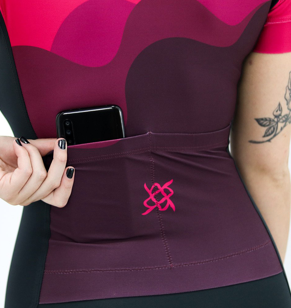 Com dois bolsos traseiros, o Macaquinho Feminino ciclismo Hupi Delicata oferece utilidade superior para a colocação de géis, comidas e até mesmo acessórios e equipamentos para seus pedais.