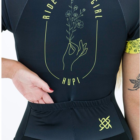 Com dois bolsos traseiros, o Macaquinho Feminino ciclismo Hupi Like a Girl oferece utilidade superior para a colocação de géis, comidas e até mesmo acessórios e equipamentos para seus pedais.