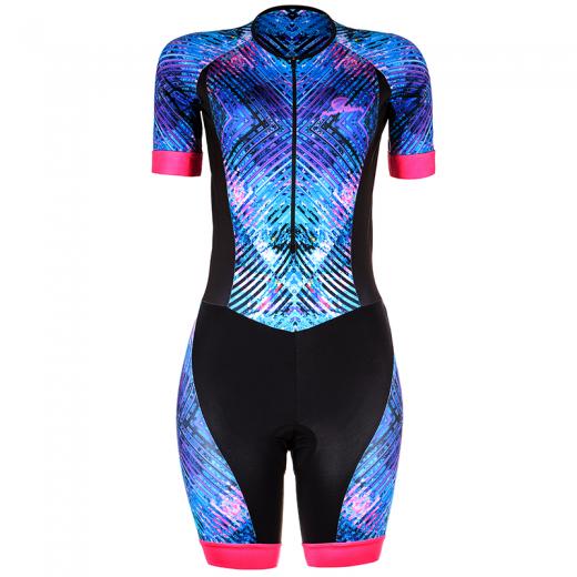 Contando com zíper frontal invisível com trava, o Macaquinho Feminino Mauro Ribeiro Cast permite maior facilidade ao vestir e despir, e, aliado ao grafismo sublimado, o  conjunto garante mais durabilidade às suas cores, sem desbotar, combinando com capacetes e sapatilhas, permitindo que seu pedal tenha conforto, adrenalina, alta performance e muito estilo.