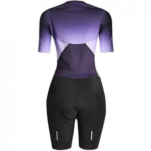 As mangas dos braços e pernas são compostas por filamentos de silicone e elevada compressão, que garantem uma melhor aderência junto à pele da ciclista, sem excesso de pressão e se mantendo no lugar.