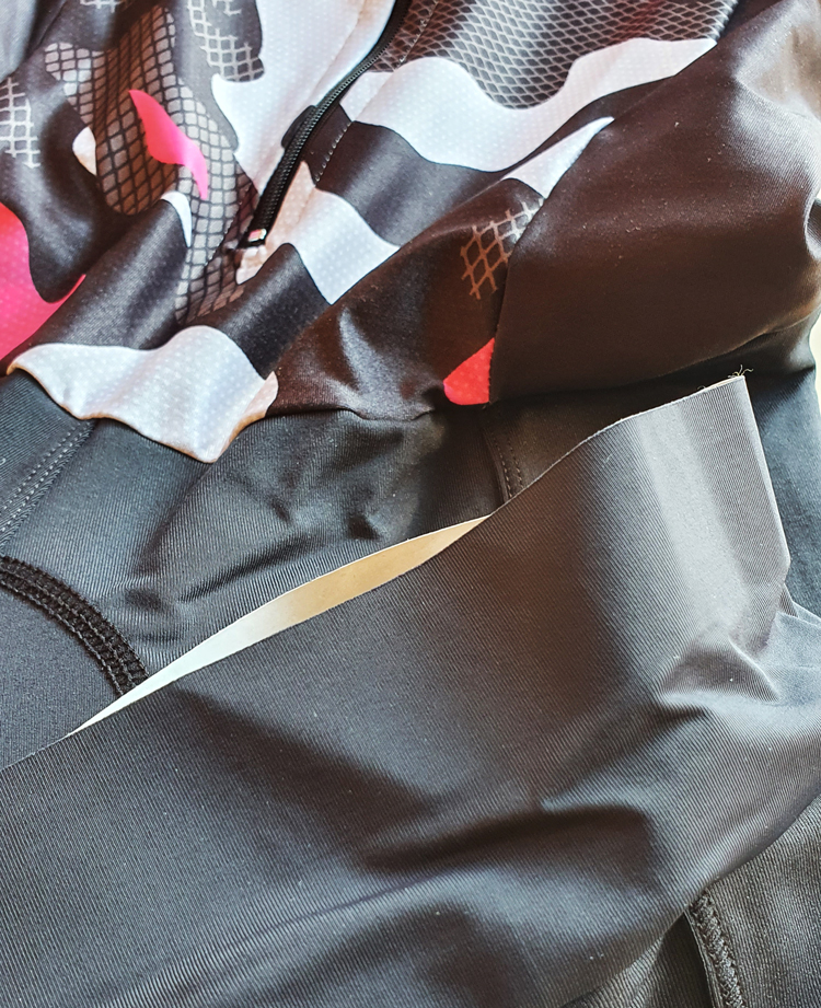 • Barra das pernas em tecido duplo - melhor fixação junto às pernas em diferentes movimentações