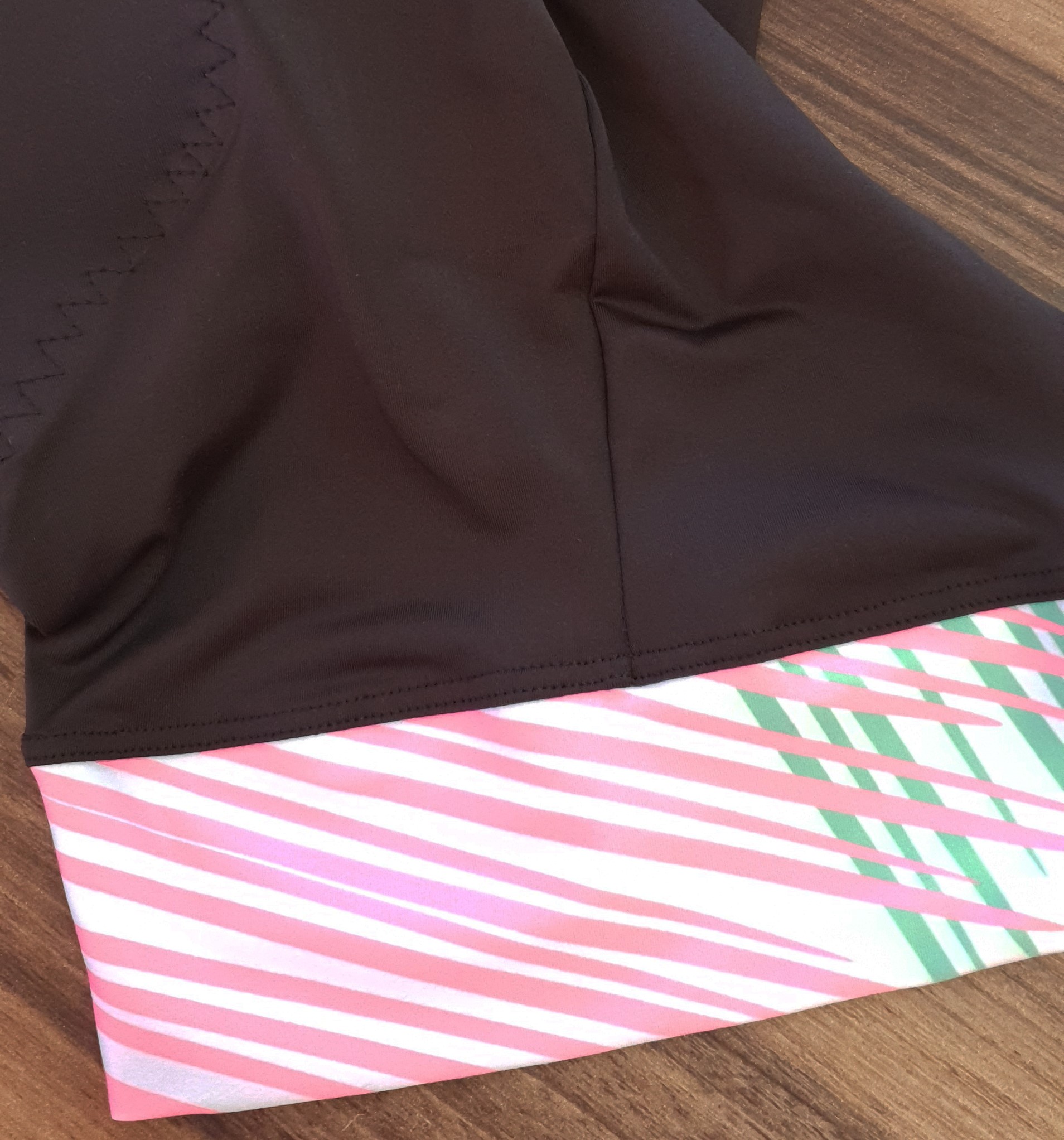 • Barra das pernas em tecido duplo - melhor fixação junto às pernas em diferentes movimentações