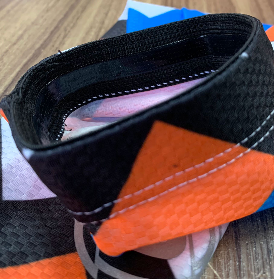 Na lateral do Manguito ASW Race Prisma, a logomarca refletiva auxilia na visibilidade em ambientes de menor luminosidade, garantindo maior segurança para seus pedais.