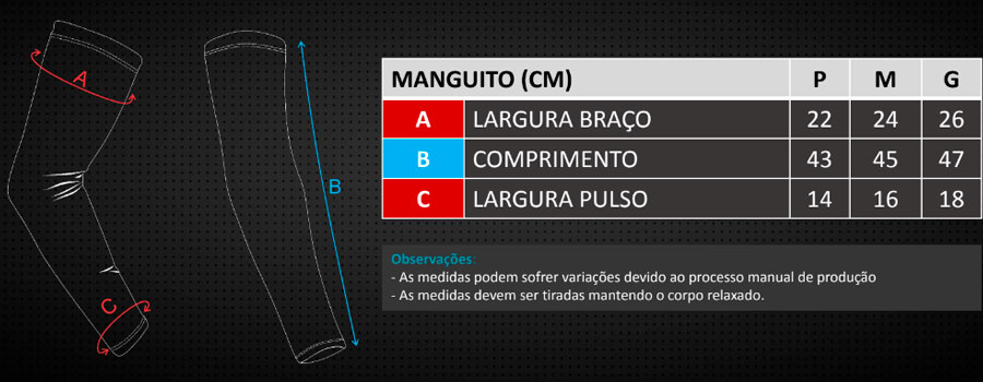 Se liga nas Medidas do Manguito Sportxtreme Lines: