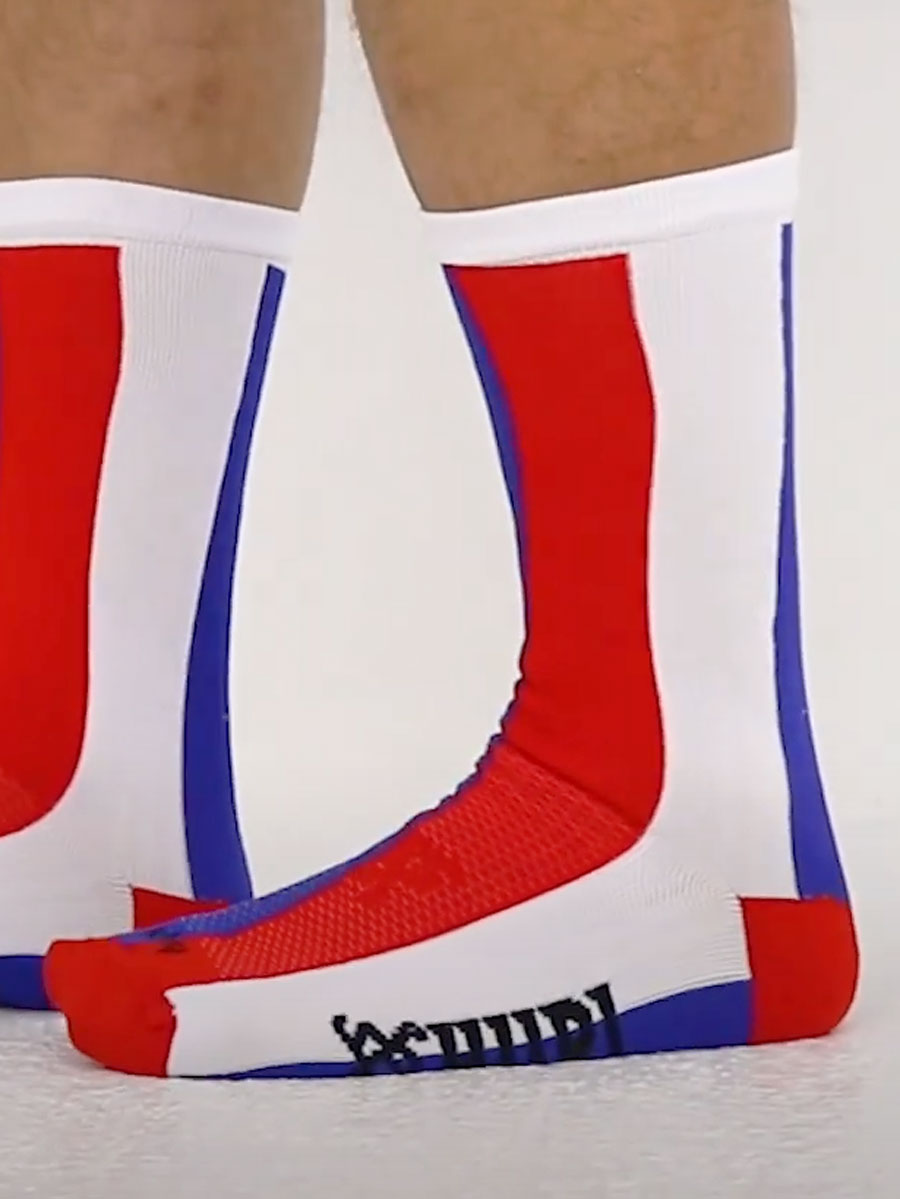 Com 3% de elastano em sua composição, a Meia Hupi Alagoas, conta com modelagem anatômica sem que a malha ceda e fique folgada mesmo dentro das sapatilhas de ciclismo e/ou tênis.