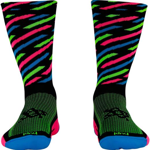 Os calcanhares e as pontas dos pés possuem reforços que ajudam a diminuir os atritos causados pelo contato com as partes rígidas das sapatilhas e/ou tênis, e as costuras mais finas da Meia Hupi Guaxe oferece ainda mais qualidade e conforto, além de cores vibrantes e grafismo descontraído, proporcionando uma  montagem de estilos diferenciados para seus pedais, sem perder nada em qualidade.
