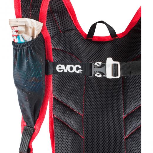 A barrigueira com engate em ABS e dois bolsos, permitem o carregamento de objetos de pequeno porte como ferramentas ou géis de reposição. Com um bolso interno e fechamento com zíper, a Mochila de Hidratação Evoc CC Race 3L permite o carregamento de objetos de médio porte como bombas de ar, alimentos, entre outros. Já na parte externa, a mochila possui 2 compartimentos, um telado, que permite levar mais uma caramanholas/squeezes e outro em Nylon® para objetos que necessitem de fácil acesso.
