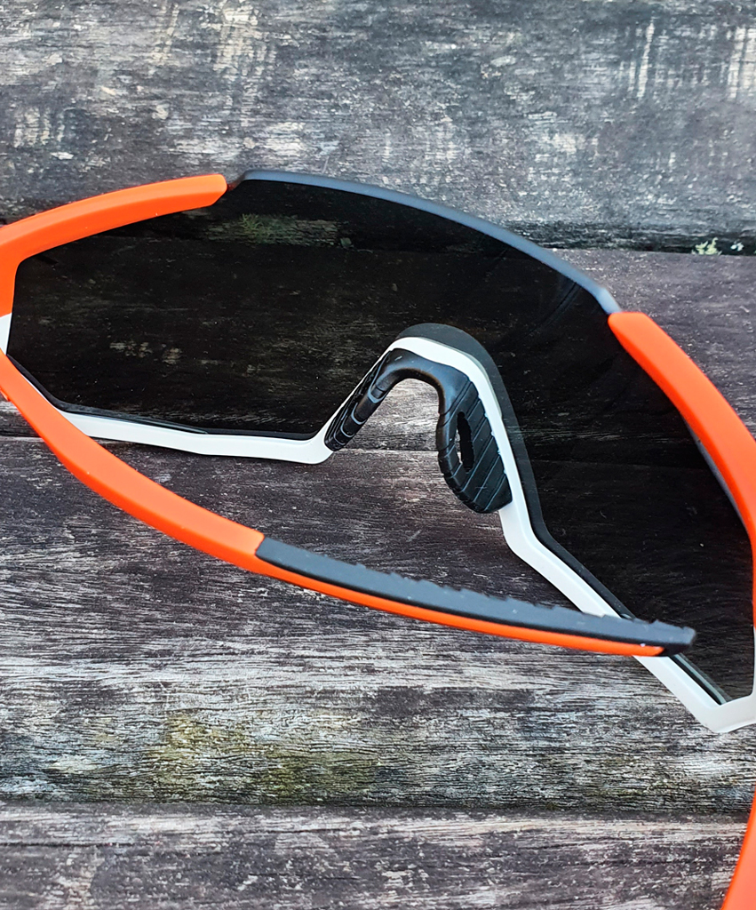 Contando com o posicionamento da lente opticamente correto, já que sua base esférica é  descentralizada, o óculos de ciclismo 100% garante nitidez e conforto aos olhos para encarar os mais variados tipos de intensidades luminosas, e, em conjunto com os tratamentos aplicados à lente, mantém a qualidade superior em relação ao conforto, visibilidade e proteção aos olhos em diferentes climas e condições de luminosidades.