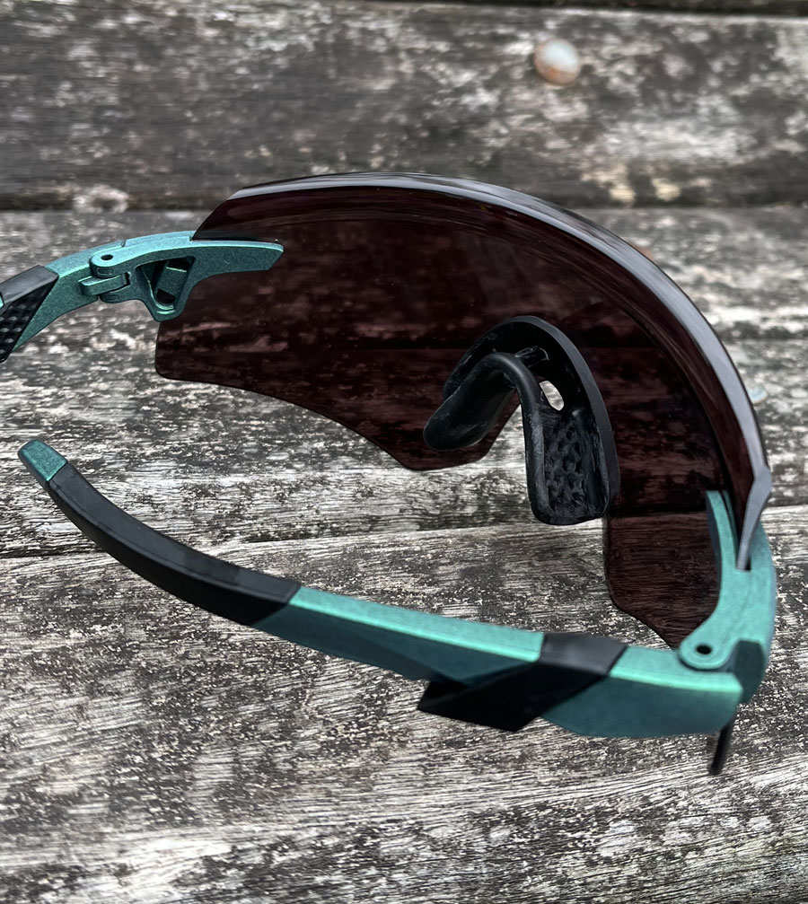 design de envolvimento progressivo que rompe padrões somado às pontas de hastes que proporcionam conforto e seus vários nosepads, criam um ajuste singular ao rosto para muito mais conforto.