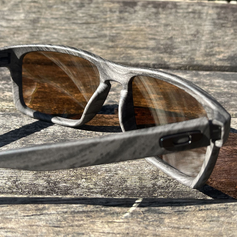 • 01 Óculos Oakley Holbrook Matte Woodgrain (acabamento amadeirado)